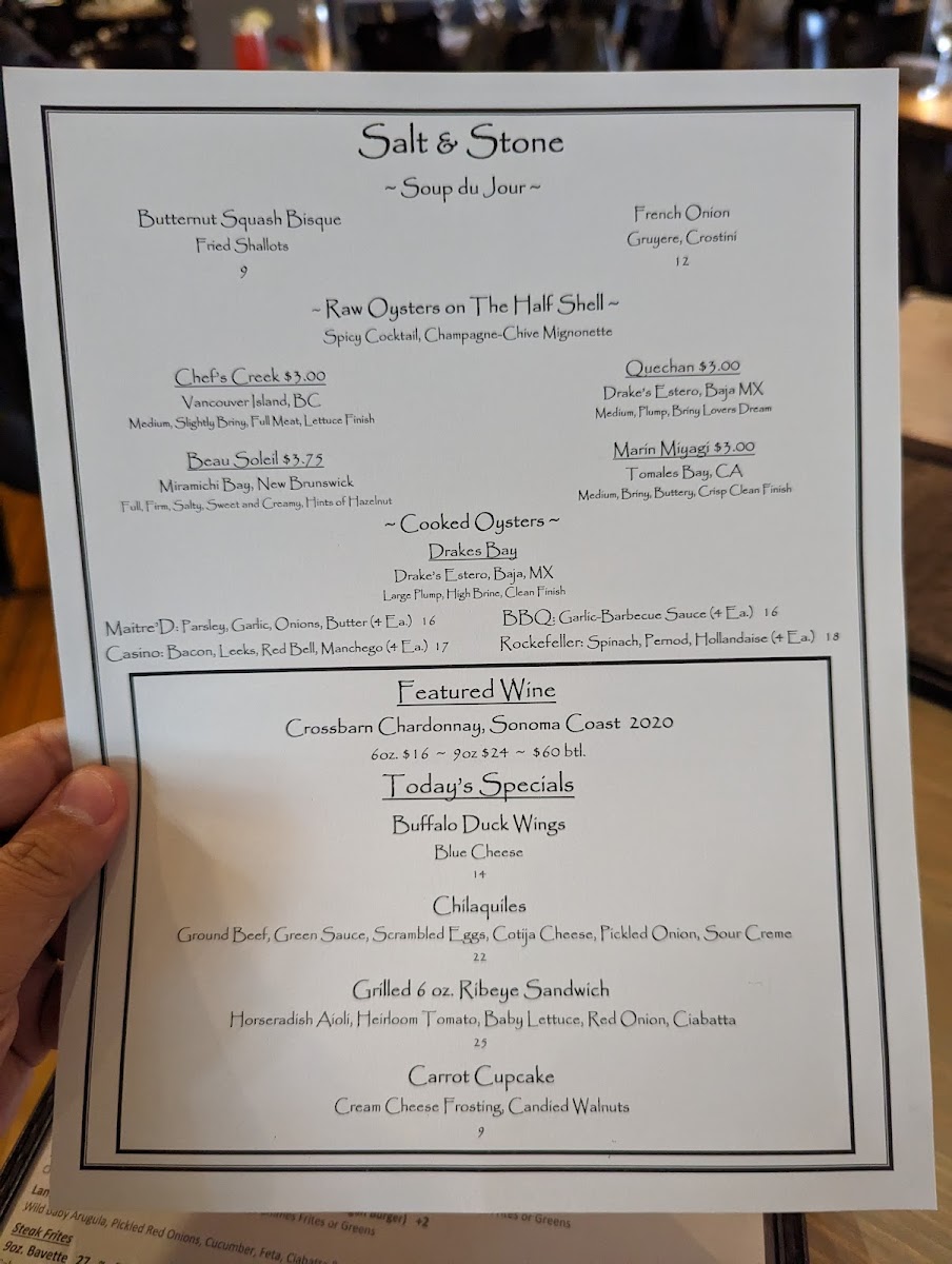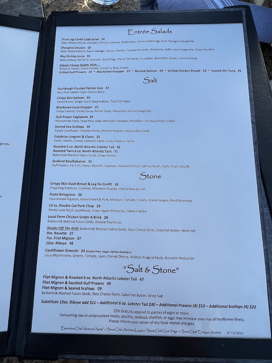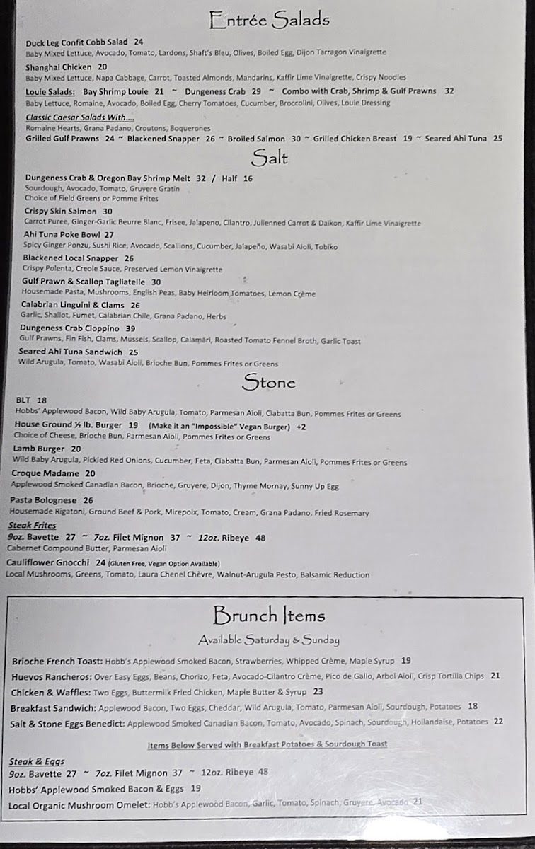 Salt & Stone Menu