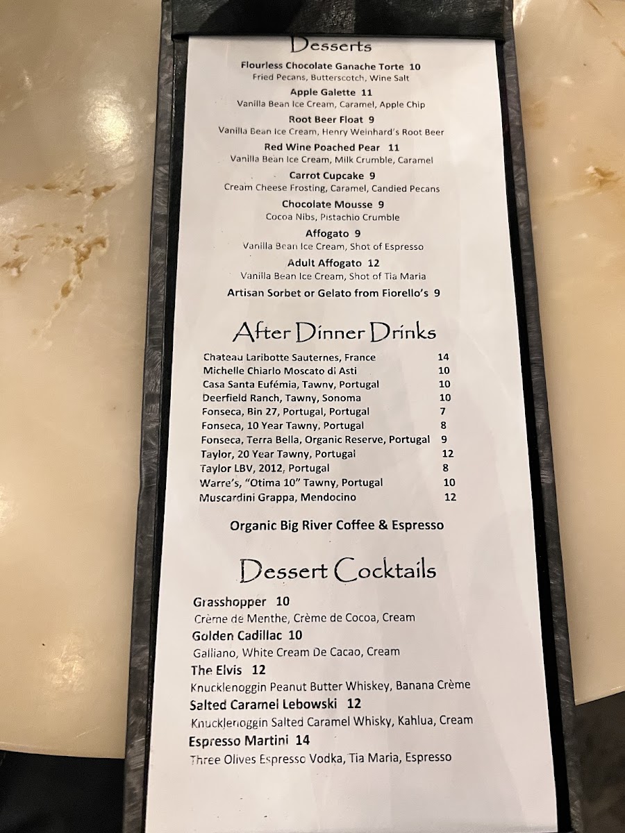 Drinks: A selection of cocktails, including the Espresso Martini, complements the food menu. The wine list features a range of red wines from various regions, including Malbec, Brunello, and Amarone, with offerings from Sonoma and other areas. Beer and other beverages are also available.